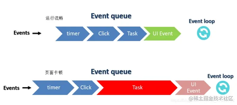 优先全部执行完 Microtask Queue 中的 Event,直到 Microtask Queue 为空,才会执行 Event Queue 中的 Event。