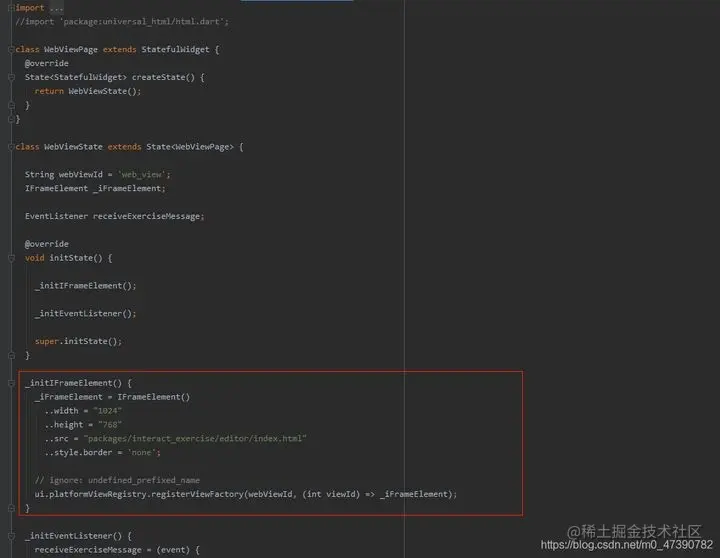 对于移动端来说,webview_flutter 可以解决掉加载 web 的问题,不过编译成 web 产物后,已经无法直接使用 WebView 插件来进行加载,此时需要用到 dart 最初设计来编写网页的一些方式,即 HtmlElmentView: