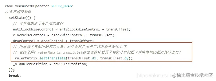 在矩阵的换算过程中,如果使用普通的matrix.translate,会导致 rotate 之后,再进行 translate 会在旋转的基数上面做系数叠加平移运算,这样计算后得到的不是自己想要的结果,因此如果运算当中有 rotate 操作时,应当使用 leftTranslate 来保证每次运算的独立性: