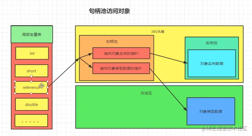 使用句柄访问的最大好处就是reference中存储的是稳定的句柄地址,在对象被移动(垃圾回收)时,只会改变句柄中的实例数据指针,而reference本身不修改。