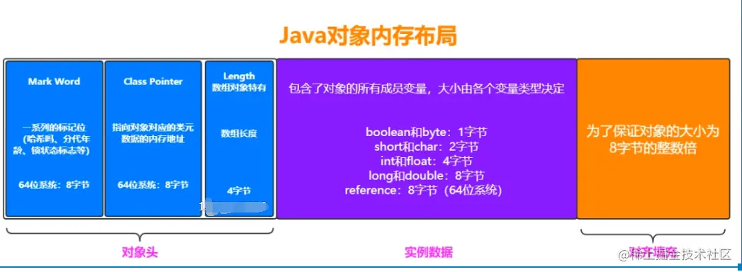 1. Java对象内存分为三部分: 对象头,实例数据,对齐填充