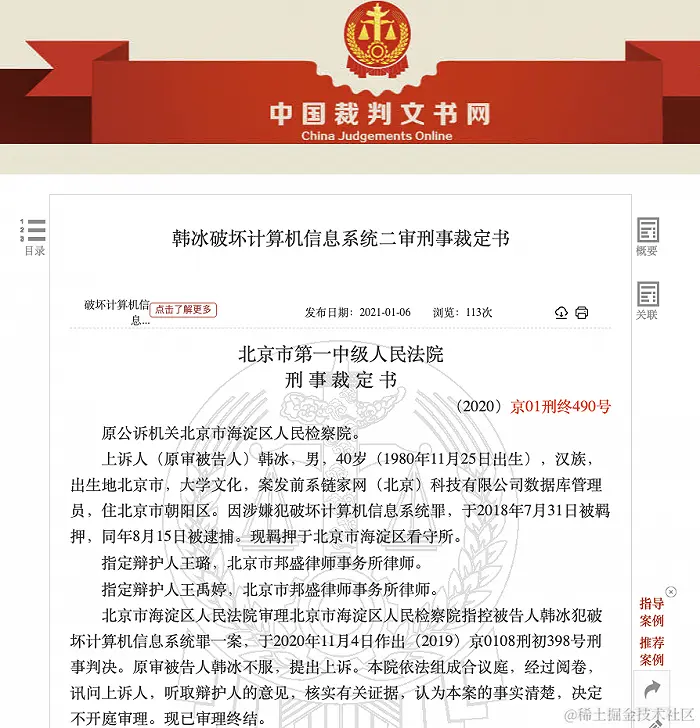 此前,北京市海淀区人民法院在韩冰的一审刑事判决书中已指控被告人韩冰犯破坏信息系统罪,原审被告人韩冰不服,曾提出上诉。