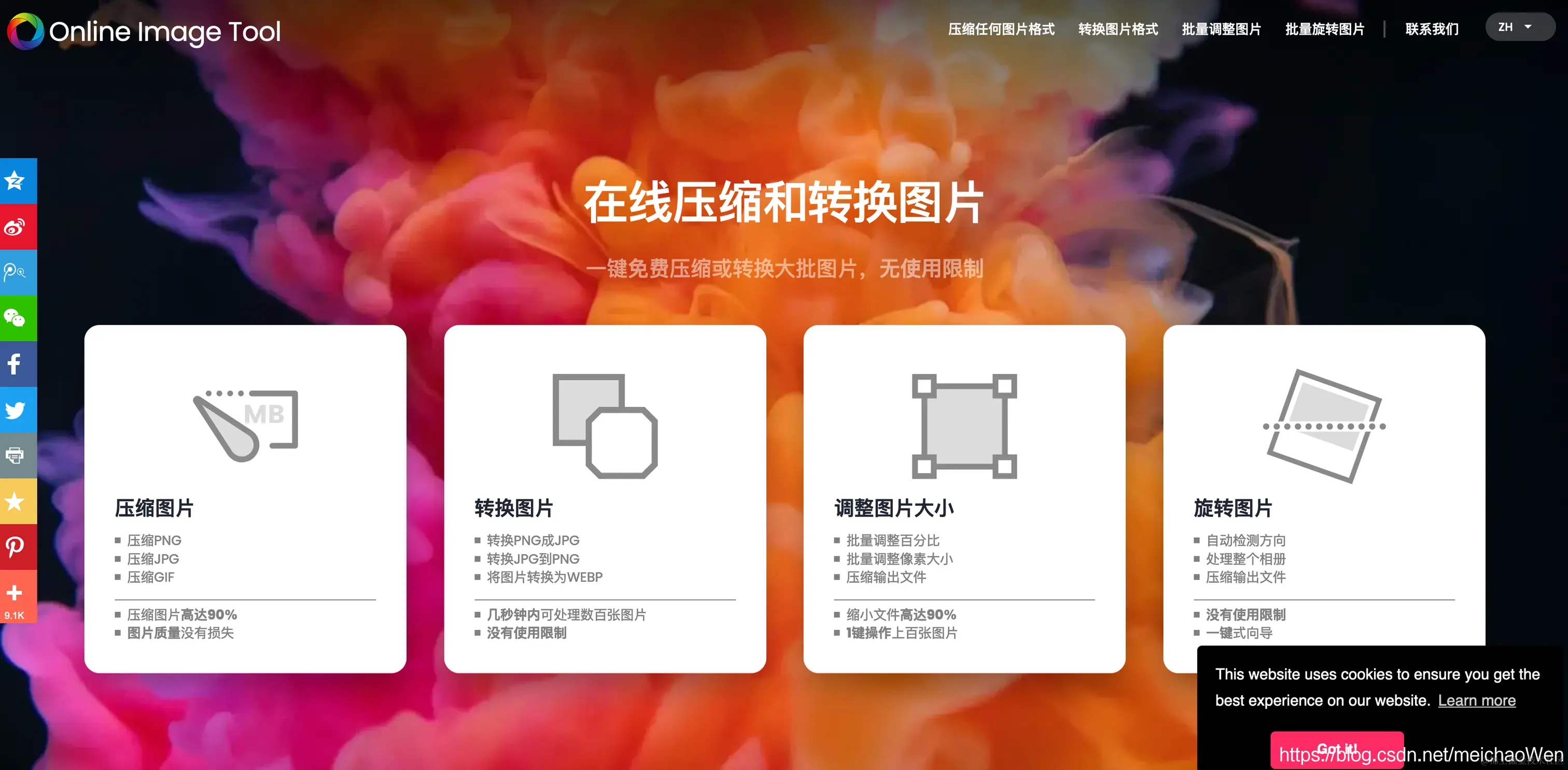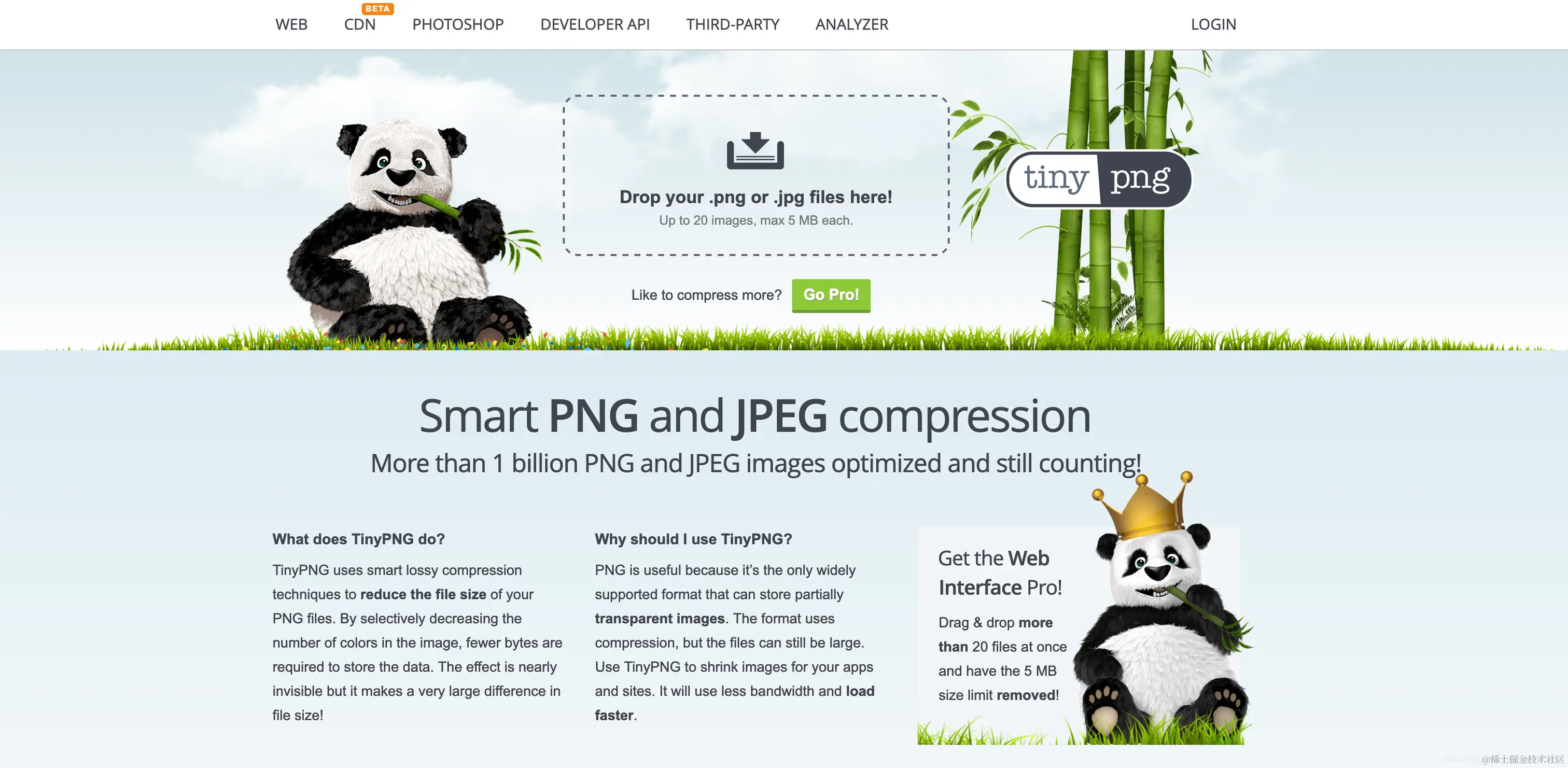 对于图片较多的页面来说,图片的大小对于页面加载速度的影响,还是十分明显的。所以在项目上线之前,尽量将图片压缩一下。免费又好用的网站安利一波。