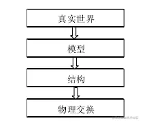 在S-57 标准官方文档中,数据结构部分详细讲述了从理论数据模型转换为S-57 数据结构的细则。这一转换隐含着一个从理论模型的逻辑结构到数据结构中的物理结构的连接。首先真实世界由理论数据建模被简化,物标被转换为指定的结构(例如记录和字段)。转换的结果就是数据结构。 数据结构本身不能被存储和转发,数据结构必须以物理传送标准进行封装。S-57 使用 ISO/IEC8211 作为封装的标准。从模型到结构的变换,如图所示:
