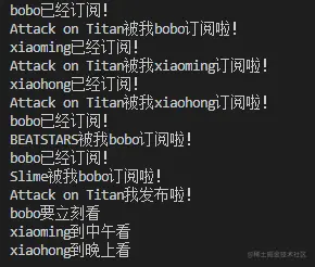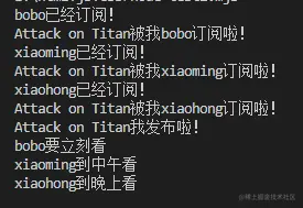 接下来是测试代码:我们新建一个巨人发布者,然后我、小明、小红都订阅了它,当巨人更新时应该能触发我们的更新后执行函数。