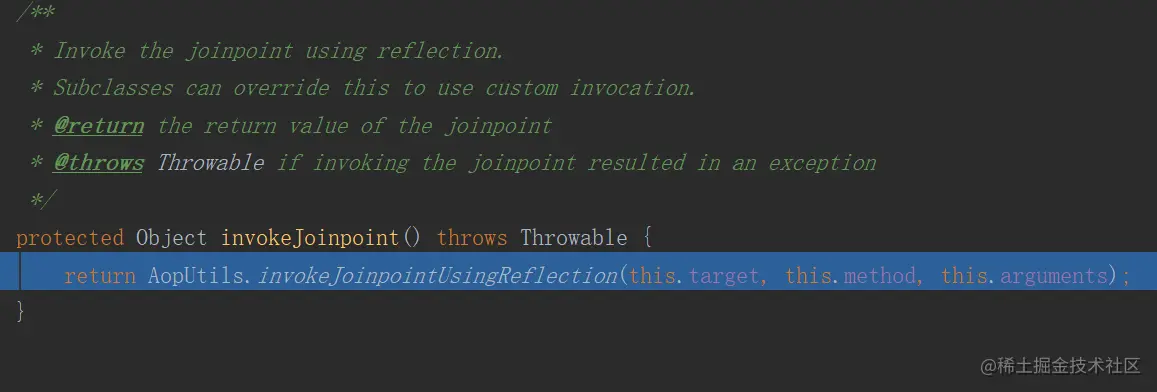 proceedWithInvocation 执行目标的方法