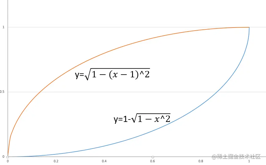 通过上面的变换,我们需要做的事情就是构造x轴区间为[0,1],y轴区间也为[0,1]的线性或者非线性关系了(也可以说是经过(0,0)和(1,1)点的线性或非线性关系),线性关系太就是y=x,也就是常用的linear了,非线性复杂一点。