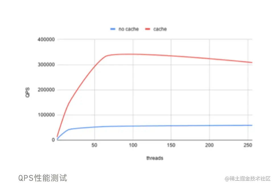 我们可以很明显的发现,增加了 Cache 的处理能力和 p95 的响应能力更加的优秀,QPS 上面有些许的下降是由于 Cache 的数据过多导致超过了分配的内存上限有重新分配了一个新对象,后期可以增加一个 LRU 的话就会更加完美。