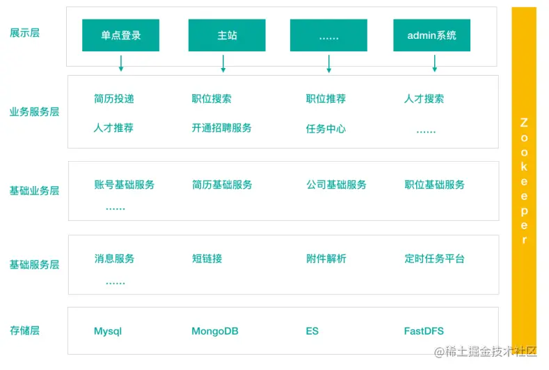 为了避免上⾯提到的那些问题,开始做模块的垂直划分,做垂直划分的原则是基于拉勾现有的业 务特性来做,核⼼⽬标第⼀个是为了业务之间互不影响,第⼆个是在研发团队的壮⼤后为了提⾼ 效率,减少之间的依赖。