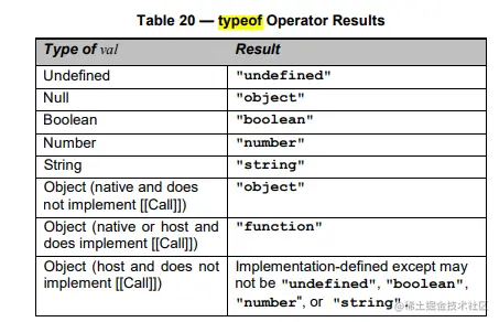 ECMAScript提供的内置类型在计算机底层都是按照二进制数据存储的,以对应的数字开始代表不同类型