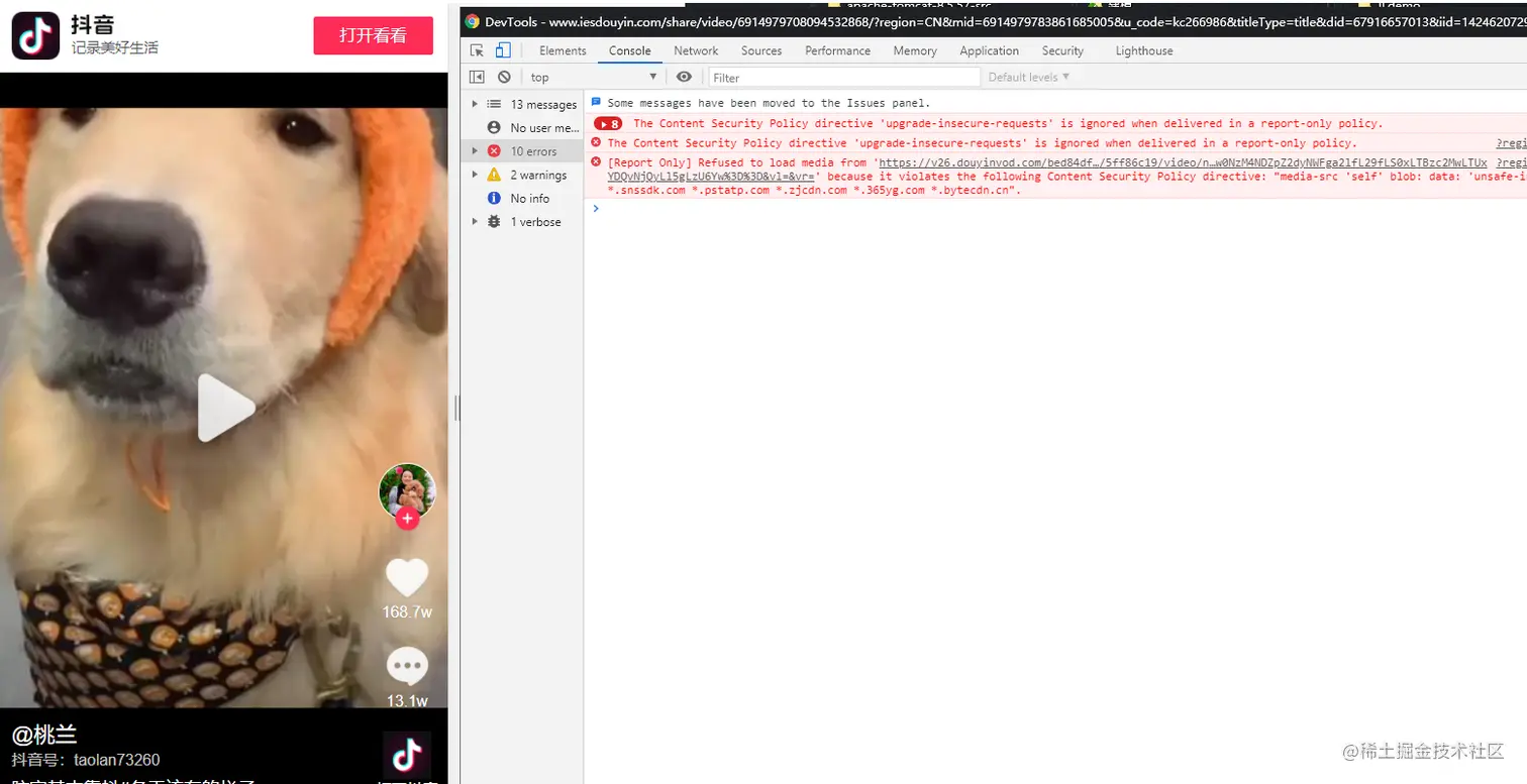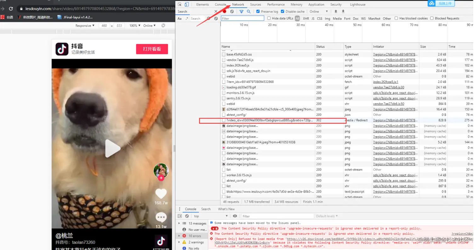 抖印有个视频不错,想要去下水印.百度了一下 全是第三方小程序,APP。老衲顿时就很生气。现在的人太坏了,不讲武德。都是封装APP,一点技术含量都没有,我正在用电脑,你让我用手机扫码操作,顿时就很生气了。还全是第三方接口,就不能整个官方接口吗??身为技术人,屁话不多说开干!!!根据以前的研究抖音去水印的经验,一顿操作猛如虎,结果成了,还特别简单,就分享出来吧!都是做技术的,分享出来嘛,独乐乐不如众乐乐。