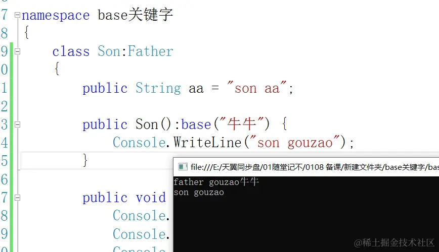 Console.WriteLine("father gouzao");