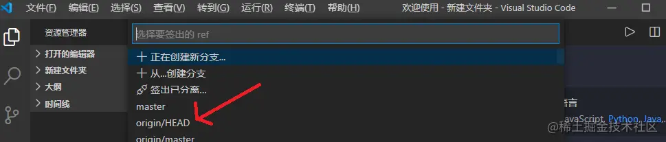在你拉代码下来的时候,也可以不用先在gitlab上创建新的分支,选择在vscode上去checkout 一个新的分支,个人习惯使用vscode切换分支的功能 - 在这里比如说origin/HEAD是你建立的远程仓库的分支,你点击切换到这个分支,后对应的vscode的坐下角对应的也会出现HEAD分支,这个是因为你切换到远程分支的时候,本地也会创建一个同名的分支,与远程的分支来建立联系,也就是追踪关系,确定自己本地分支的列表,可以通过git branch来观察(分支作用是列出你本地分支的分支名),确实自动创建了本地的同名分支。你也可以验证我的说法是否正确,毕竟编程这件事一定要自己去敲出来,自己才有成长。