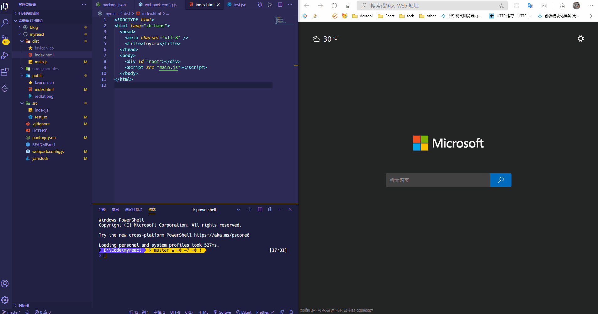 命令打包,然后再手动在浏览器中打开页面才能看到开发结果,这是十分影响开发效率的,我们要的效果yarn start