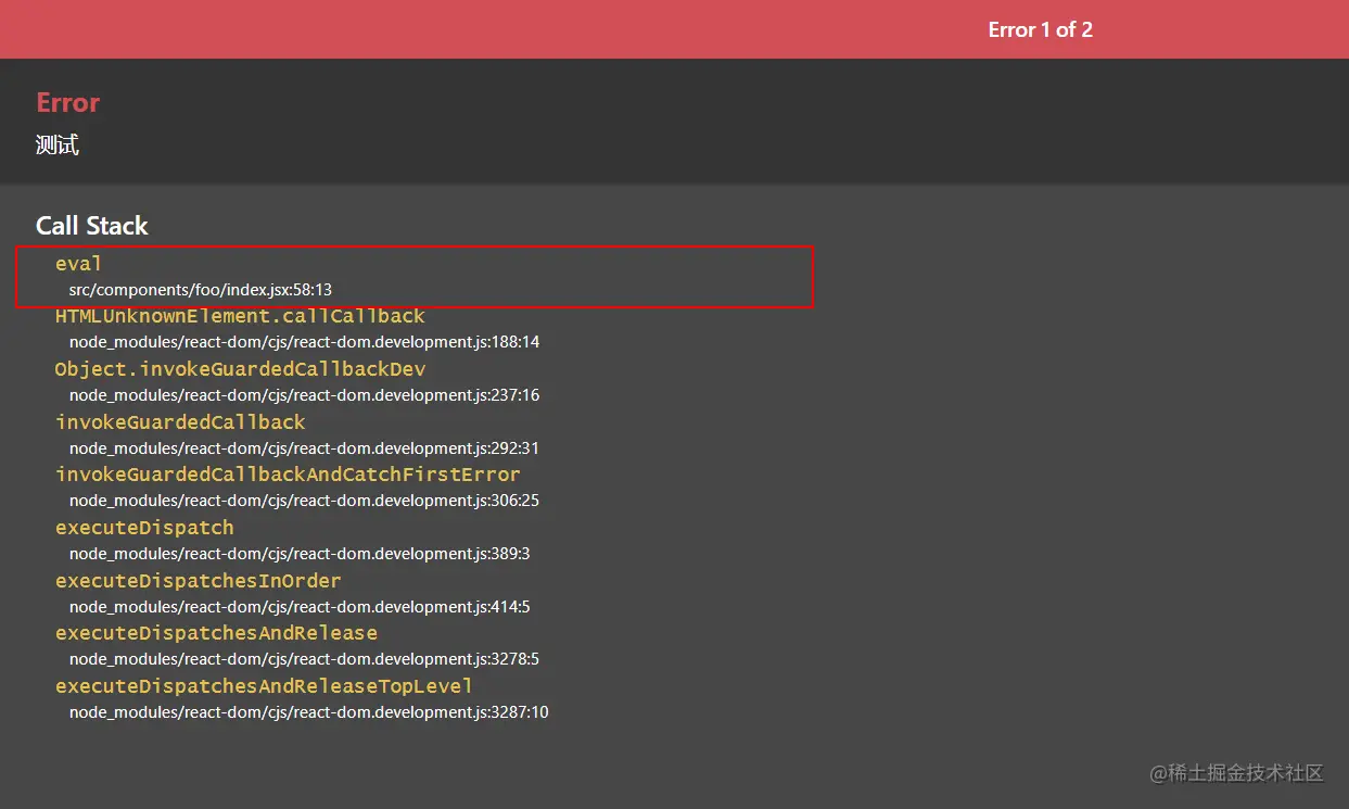 可以详细追踪到错误信息的位置,但是出现错误可以在 devtool 中直接跟踪到源码,例如上图 - 指定