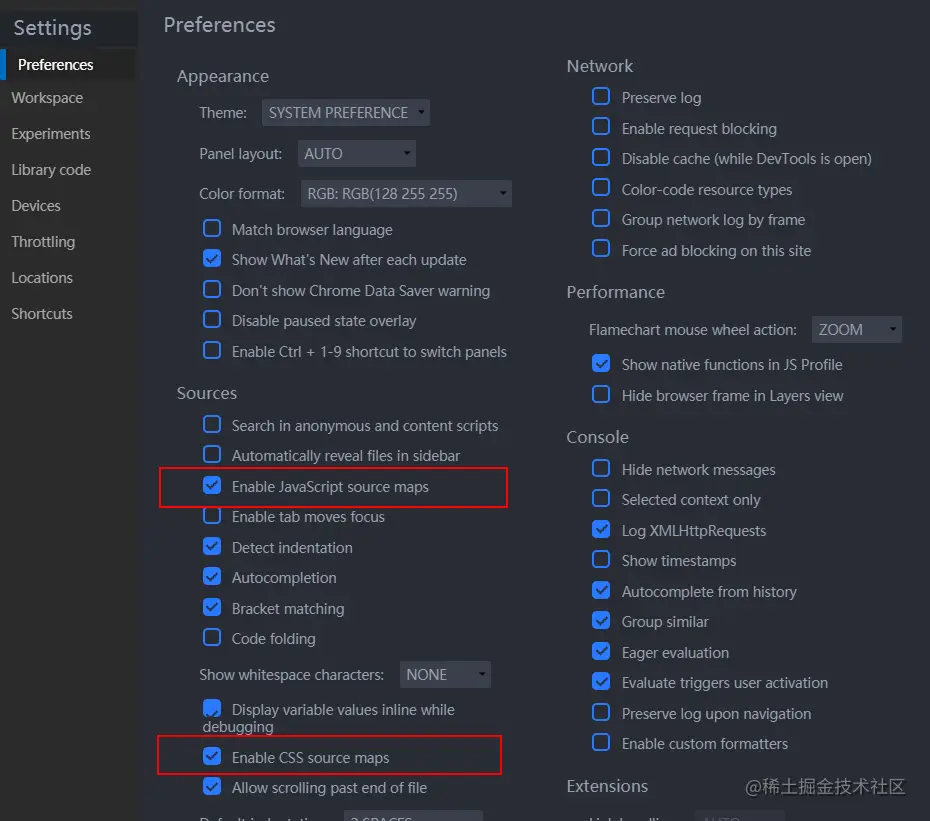 后来,在 JS 基础上衍生出来的语言,例如 JSX,TS,CoffeeScript 等也都能通过这样技术映射出来。一些浏览器也都内置了对 source map 的支持,例如 Chrome 可以在 devtool 的设置面板中开启 JS 和 CSS 的 source map。