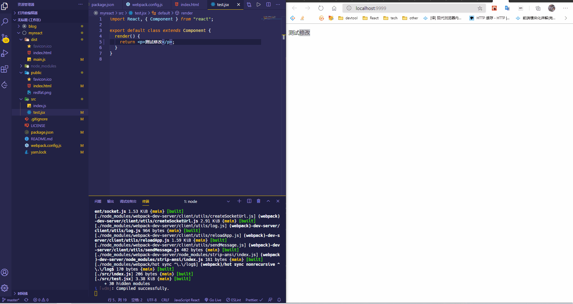 保存文件,然后页面能自动更新,为此需要配置 HMR 和 webpack-dev-server