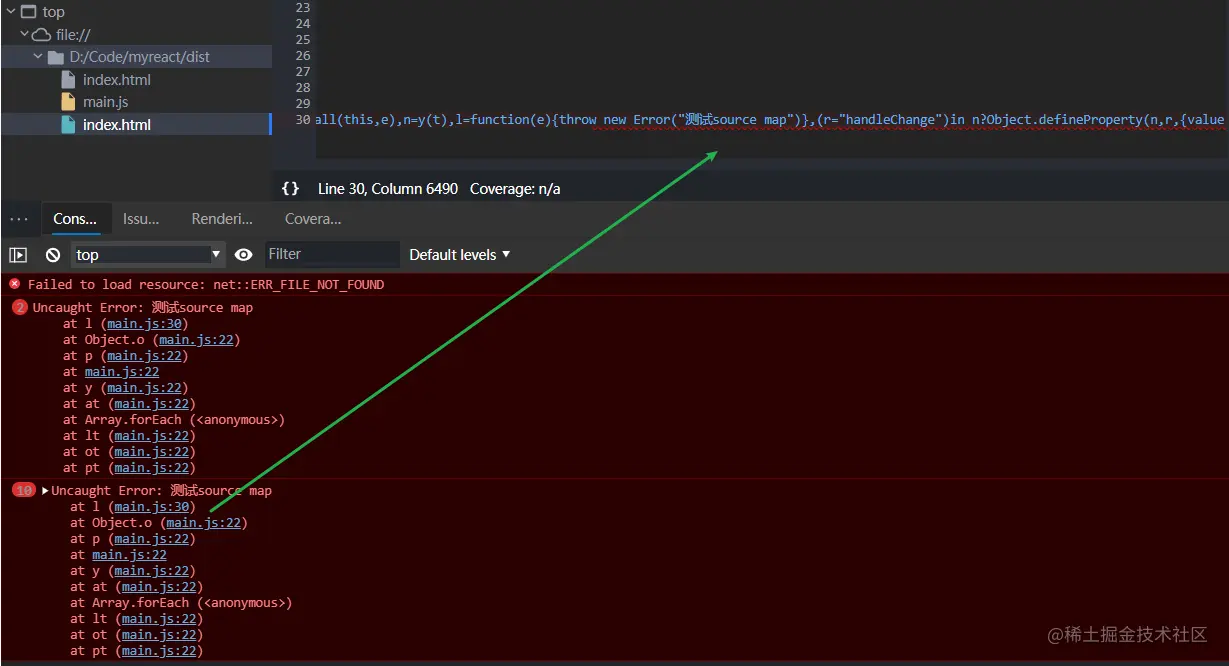 但是,source map 在生产环境中仍然有使用的必要性,对于上面的错误测试代码,当我们执行yarn build