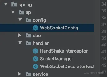 上述代码中,主要是实现了 public WebSocketHandler decorate(WebSocketHandler handler) {} 方法,重写了接口中的 afterConnectionEstablished 连接