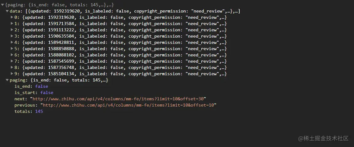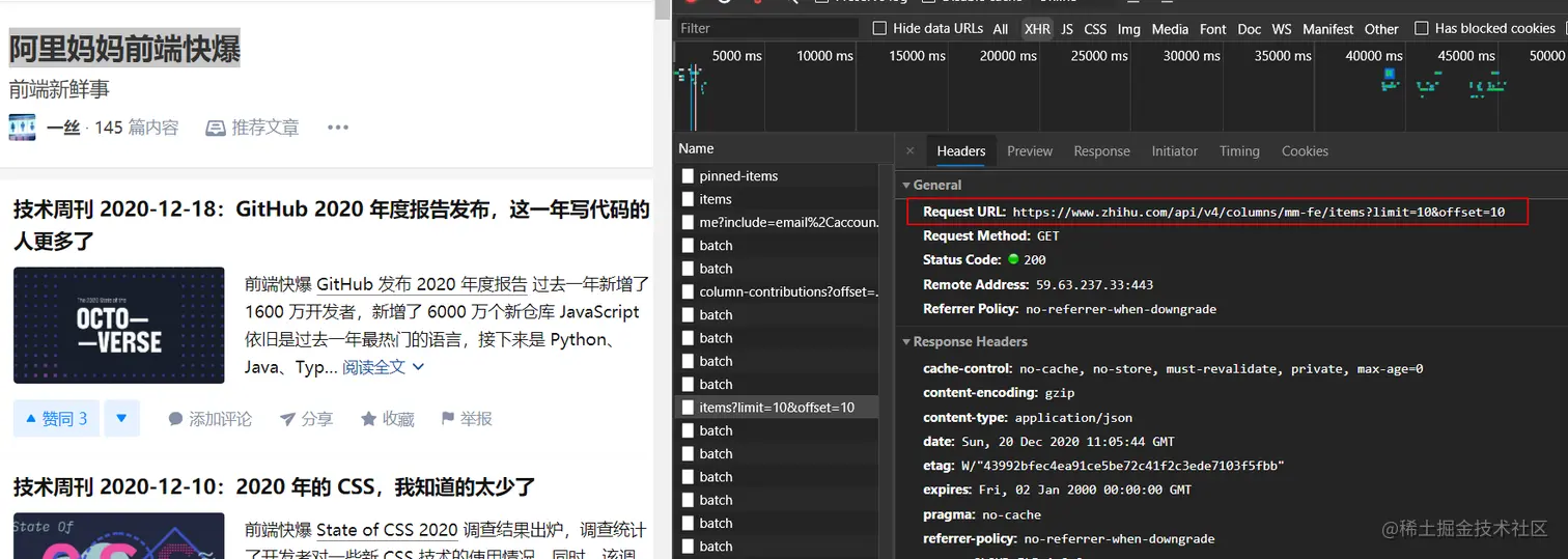 Request URL: https://www.zhihu.com/api/v4/columns/mm-fe/items?limit=10&offset=10
