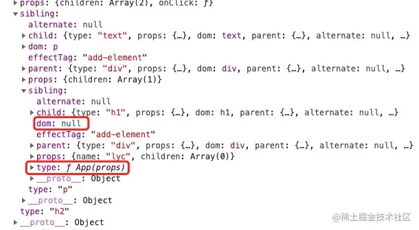 - fiber没有dom node(也就是dom属性为null)