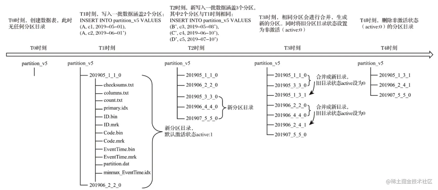 MergeTree的特点在于分区的合并,从分区的命名可以解读其合并逻辑。命名规则: