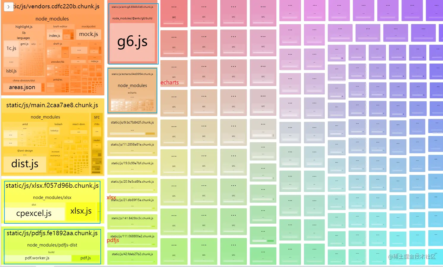 接下来可以继续按照上述的方法,把pdfjs,echarts,g6这三个模块拆出来,需要注意像@antv/g6这种模块名称带有分隔符的,分隔符需要使用[\\/]去匹配分隔符。