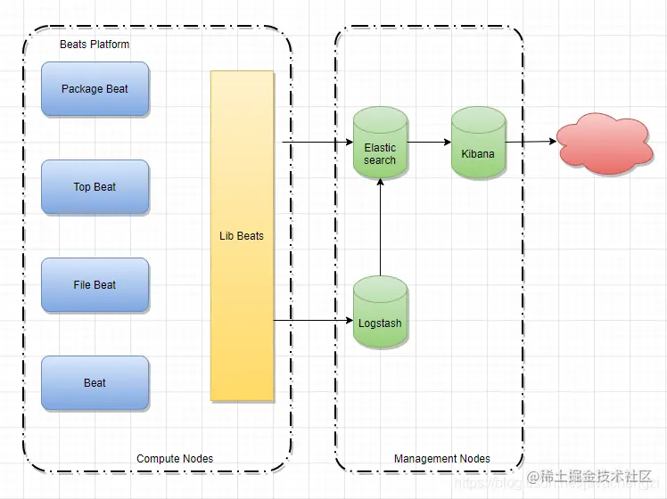 ELK 是软件集合 Elasticsearch、Logstash、Kibana 的简称,由这三个软件及其相关的组件可以打造**大规模日志实时处理系统。**新增了一个 FileBeat,它是一个轻量级的日志收集处理工具(Agent),Filebeat 占用资源少,适合于在各个服务器上搜集日志后传输给 Logstash,官方也推荐此工具。