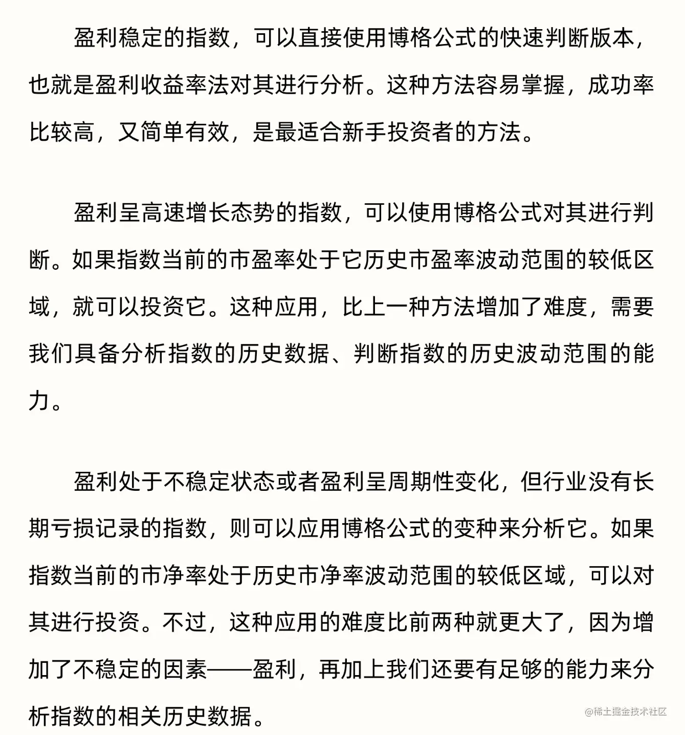 - 博格公式变种。 使用市净率来进行分析。使用博格公式变种还有一个前提,就是公司的盈利虽然不稳定,但是要求公司在经营困难时也不会亏损。