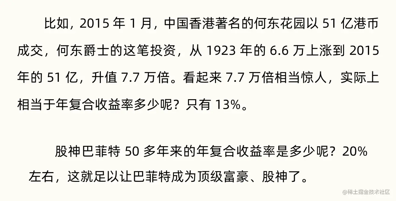 - 虽然年复合收益率不高,但是长期保持并且借助复利,收益都是惊人的。