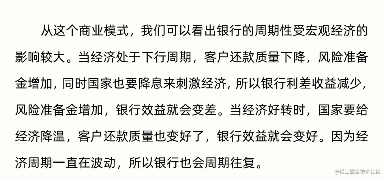 - 银行的商业模式:银行的收益=利息收入+非利息收入-利息费用-风险准备金