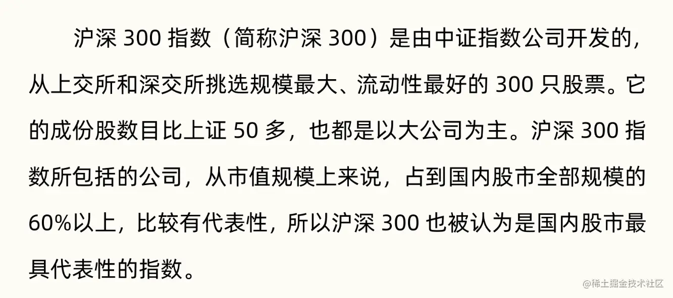 - 特点: 兼顾上交所和深交所,相比上证50覆盖面更广,更具代表性