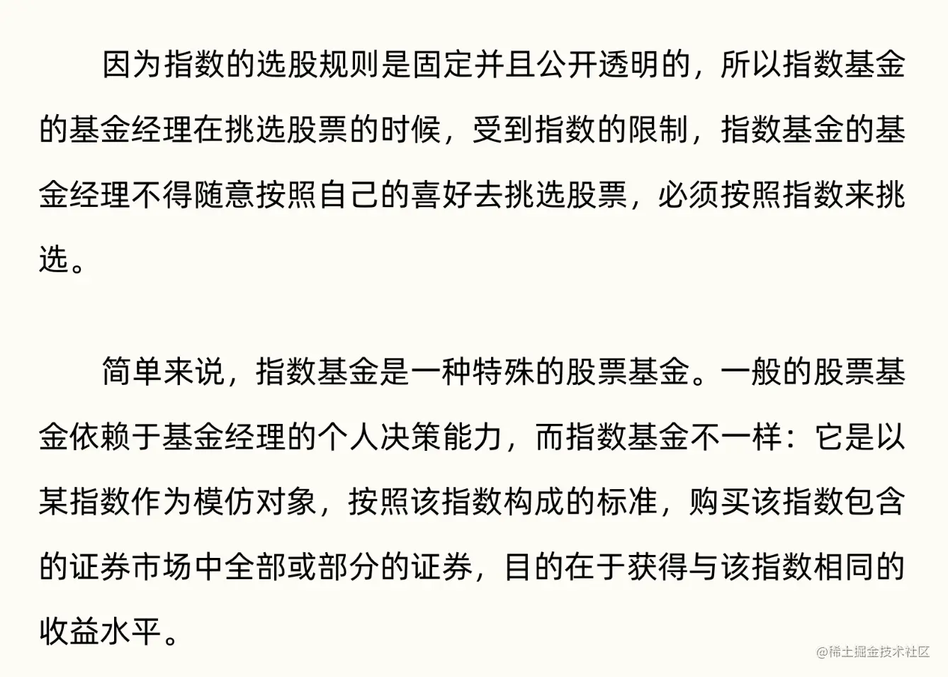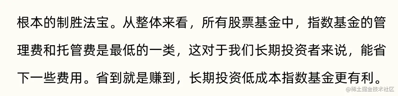 - 指数基金的业绩和基金经理关系不大,主要取决于对应指数的表现