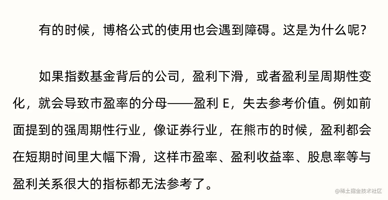 - 盈利稳定:对于有“市盈率陷阱”的没落行业和周期行业,有的行业处于成长期或是亏损期,这些都不适用市盈率