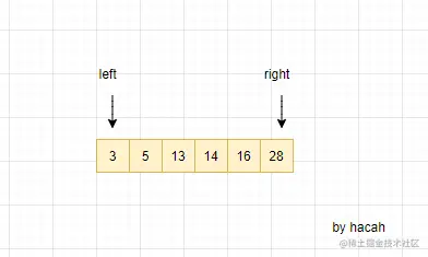 假设要找16,定义两个变量left,right存储一段数组的左边和右边下标