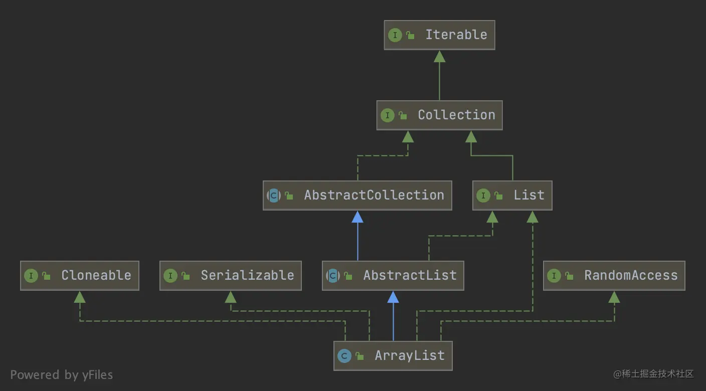ArrayList利用一个数组存储元素,它的实现很简单,基本属性只有两个。