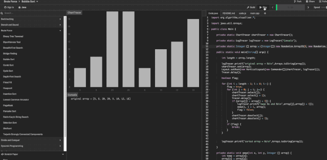- 控制台实时的显示执行过程的输出,可以更好的帮助你理解算法