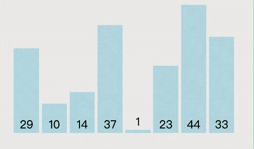接下来我们选择冒泡排序算法来演示一下其排序的执行过程,排序动画如下图所示: