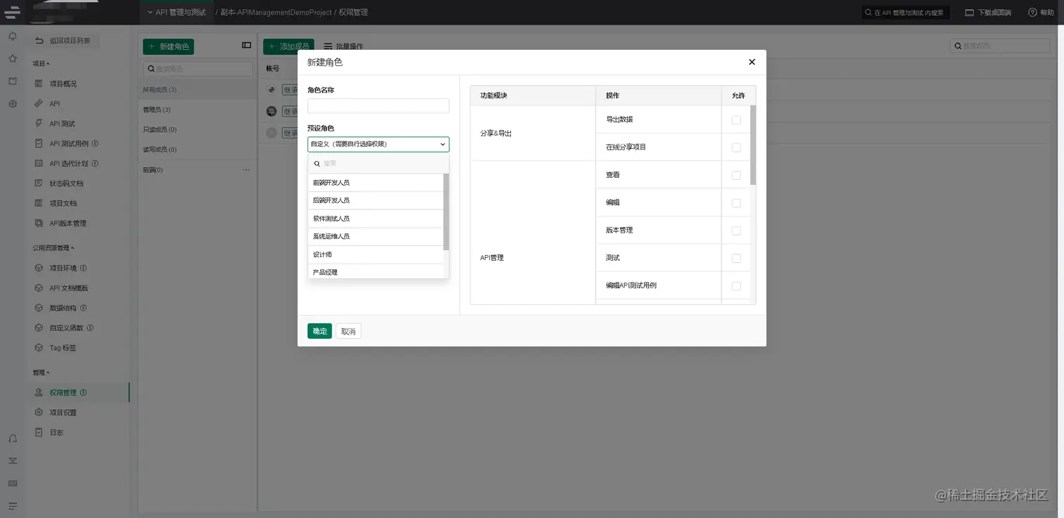 3、接口文档的角色不同。接口文档工具可设置文档使用角色,可更具不同的使用角色设置使用范围。