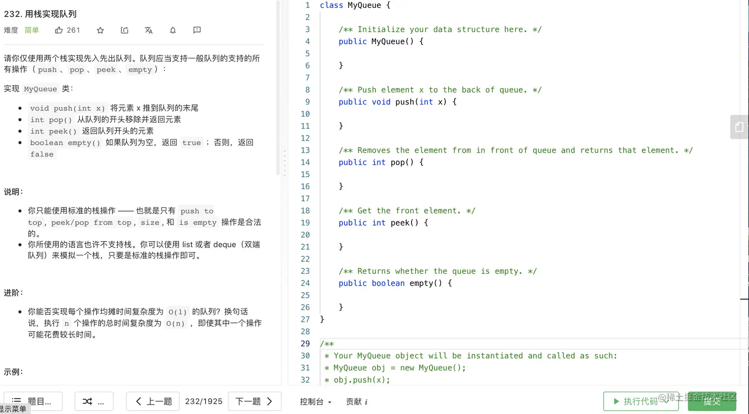 2.1,力扣练习-232. 用栈实现队列