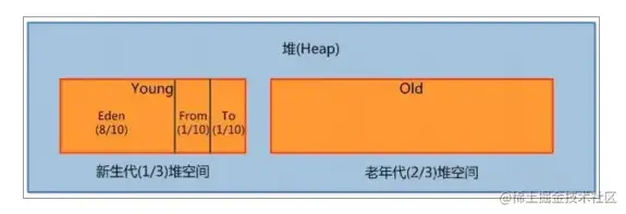 Java 堆从 GC 的角度还可以细分为: 新生代(Eden 区、 From Survivor 区和 To Survivor 区)和老年代。