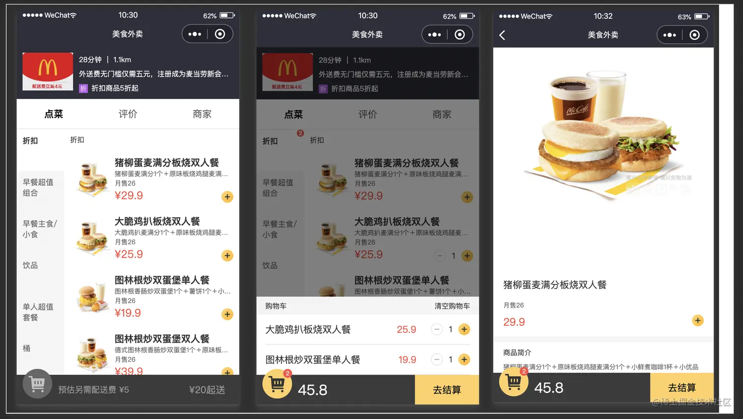 下面是使用mpx框架开发的外卖小程序页面,项目地址:github