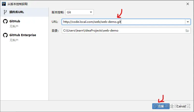 接下来在客户端,使用IDEA IDE 克隆项目: