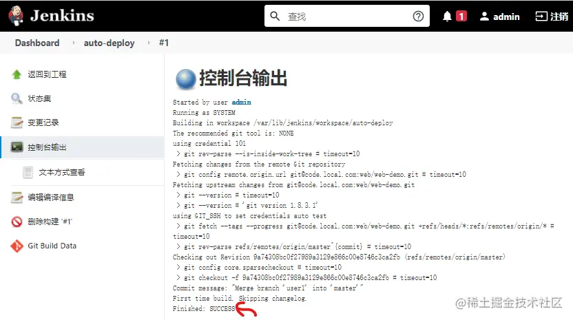 至此Jenkins拉取GitLab仓库代码成功搭建。