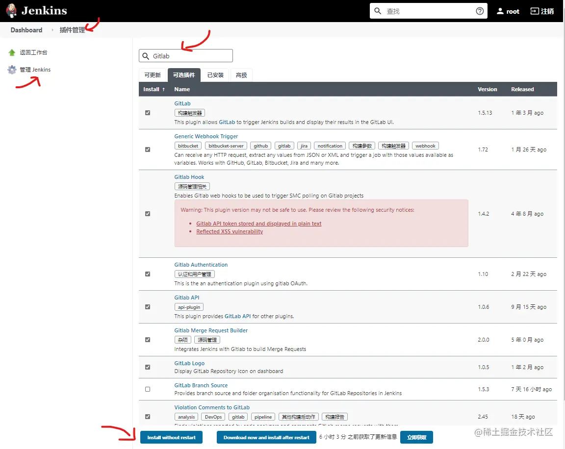 安装需要的Gitlab插件