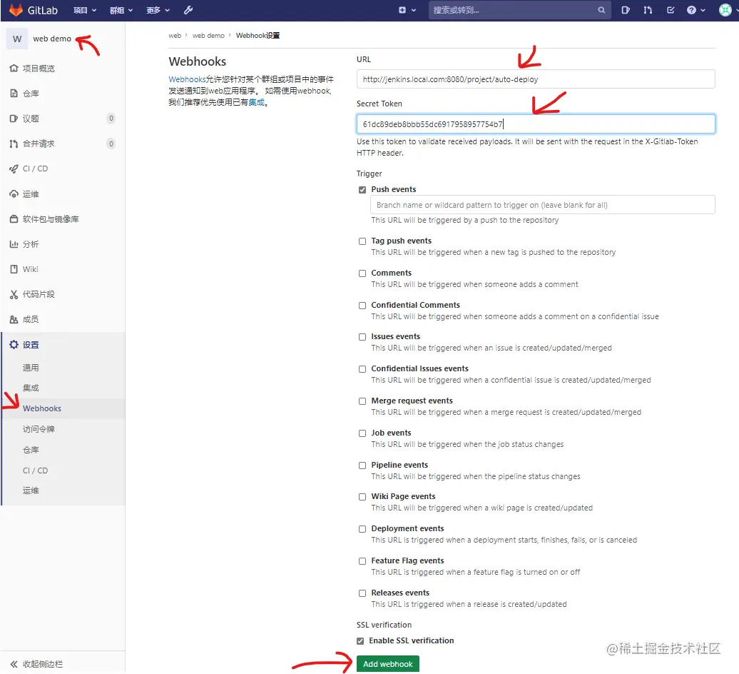 5.2 GitLab配置WebHook