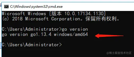 在出现的命令行窗口输入:go version回车,这时会显示你当前安装的go版本,说明咱们已经安装成功了