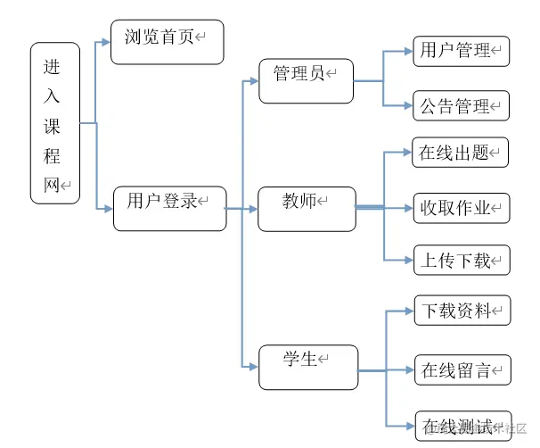 可以分为三个角色管理员、教师、学生,各自的功能如下