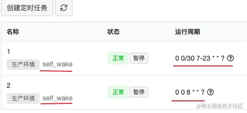 操作:云引擎 > 定时任务 > 创建如图两个函数,注意红线标出部分即为选择的函数类型和值