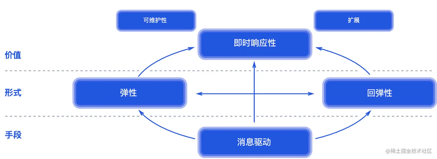 当一个系统具有即时响应性(Responsive)、回弹性(Resilient)、弹性(Elastic)以及消息驱动(Message Driven)。 我们称这样的系统为反应式系统(Reactive System)。